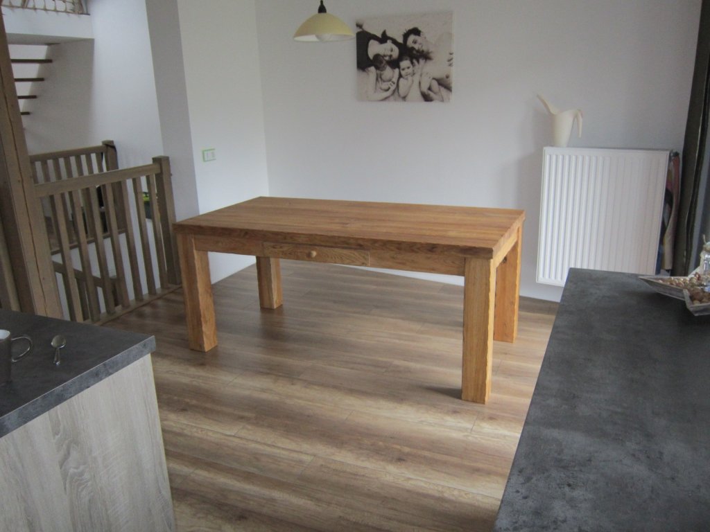 Tloušťka noh 120 mm podtrhuje masivnost celého stolu. Stolová deska je složena z masivní spárovky. Ve stolové desce jsou zachovány praskliny a vypraskané suky, které dávají stolu autentičnost starého stolu. K tomuto stolu vám za příplatek upravíme do starého vzhledu i ostatní naše výrobky - židle, lavice atd.